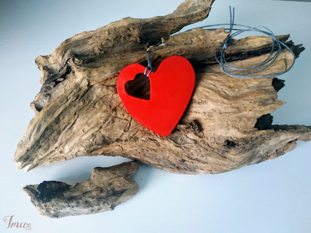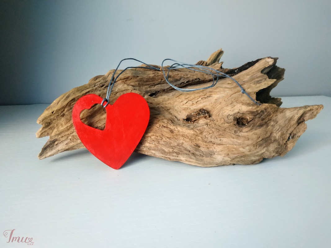 Ryškiai raudonas pakabukas "Širdis - širdyje" 7 cm 🙂