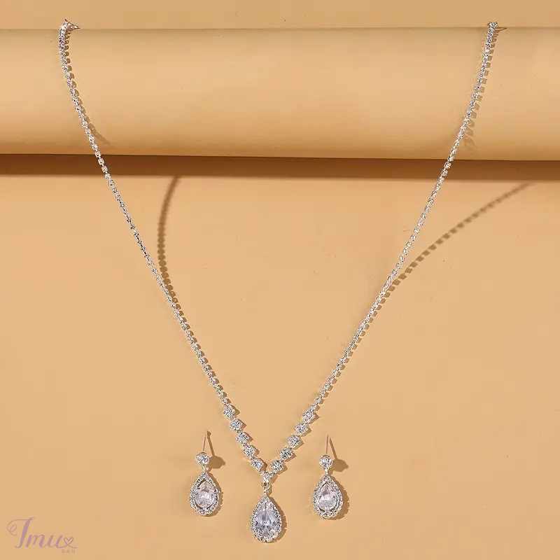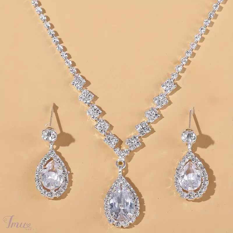 Moteriškas sidabruotas papuošalų rinkinys, pakabukas ir auskarai 28549