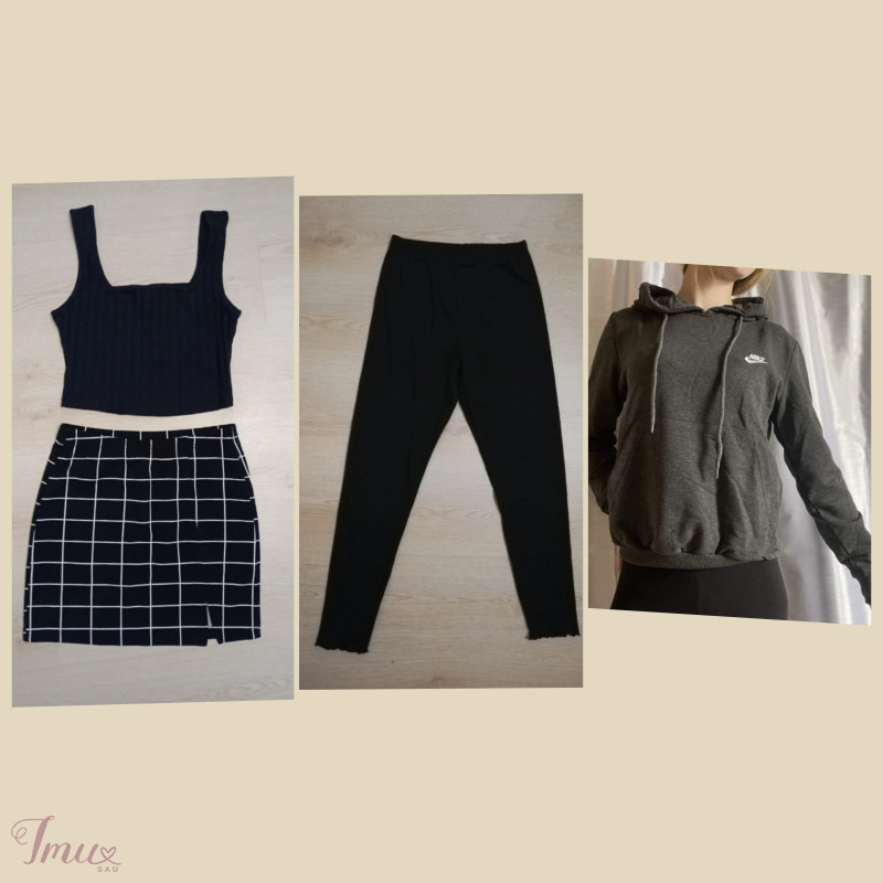 Nauji rūbai urmu, kaina už visus rubelius. Urme yra džemperis, crop top palaidinė ir sijonukas, tamprės. Dydis S