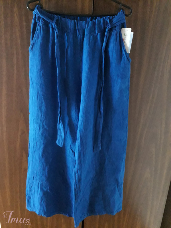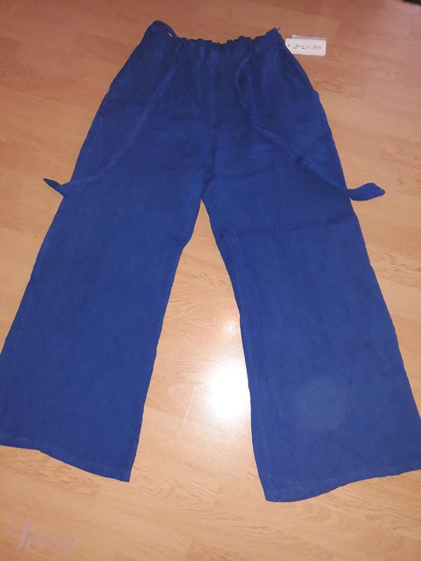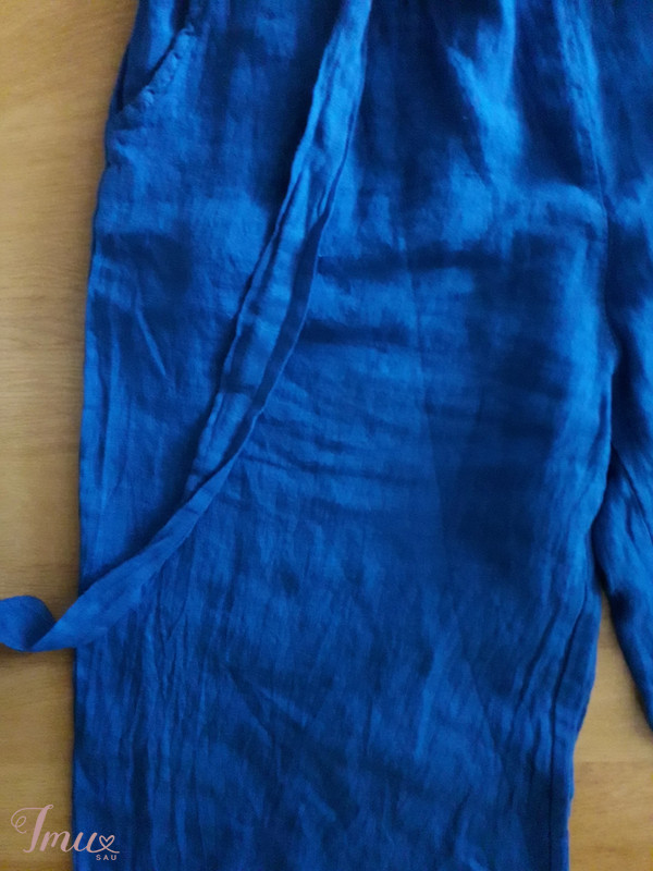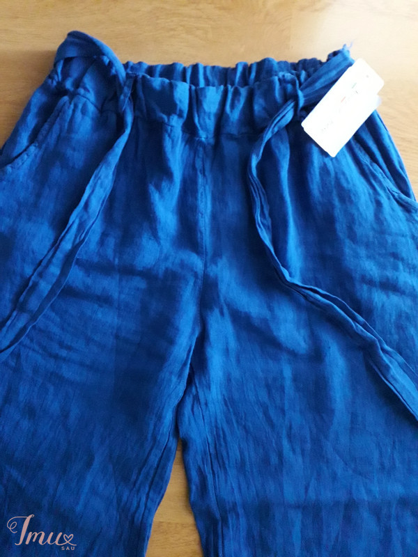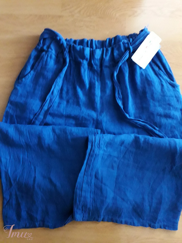 Naujos lininės tiesaus silueto kelnės, juosmuo su guma ir raišteliais, yra kišenės (100 proc. linas). Ilgis - 98 cm., liemuo - 38/45, klubai - 56 cm., dydis nuo S-M iki L.Kaina - 25 Eur.