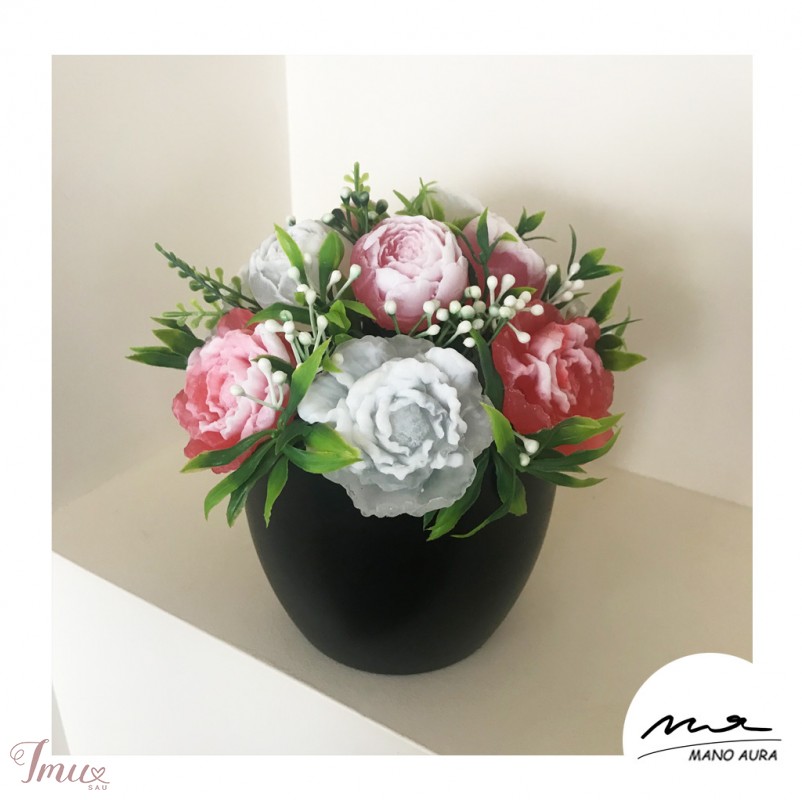 Rankų darbo kvepianti puokštelė iš muilo žiedų. Daugiau galite rasti www.manoaura.lt