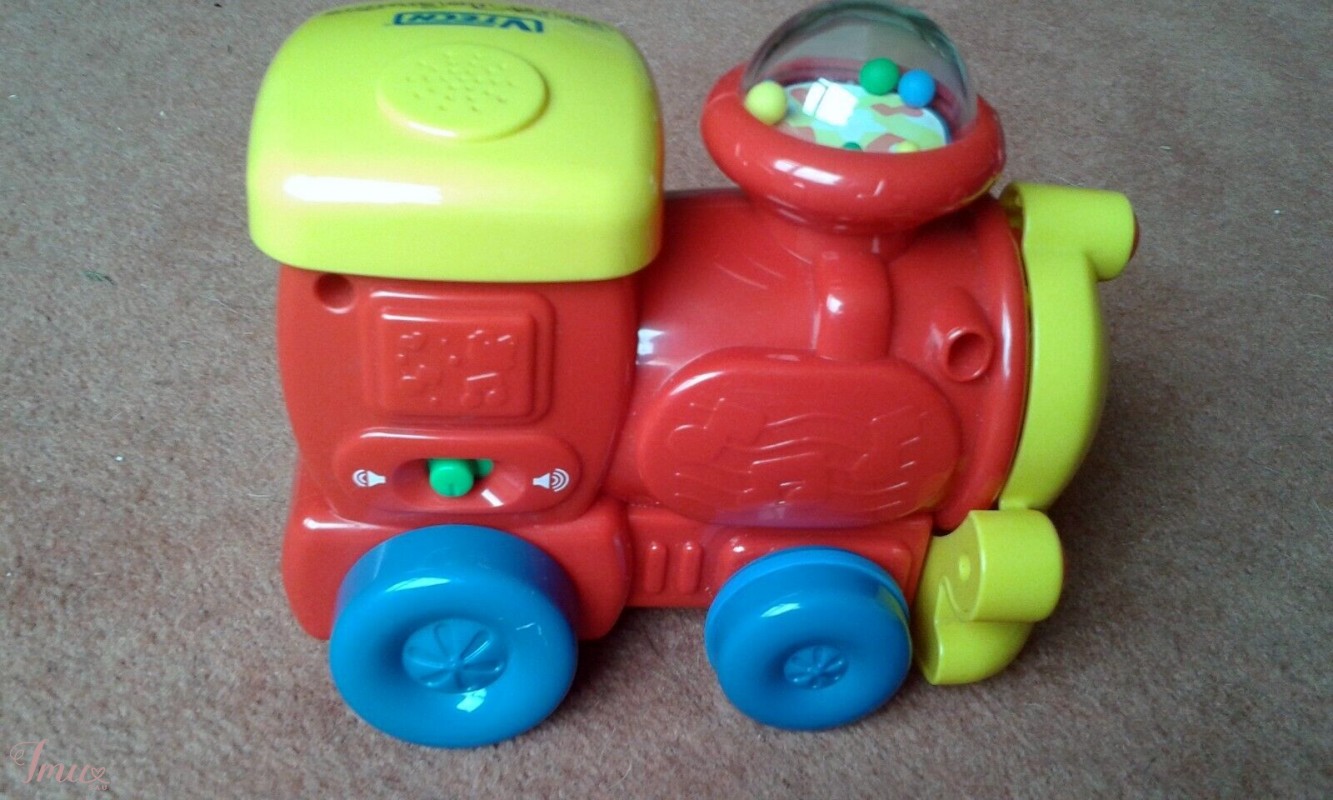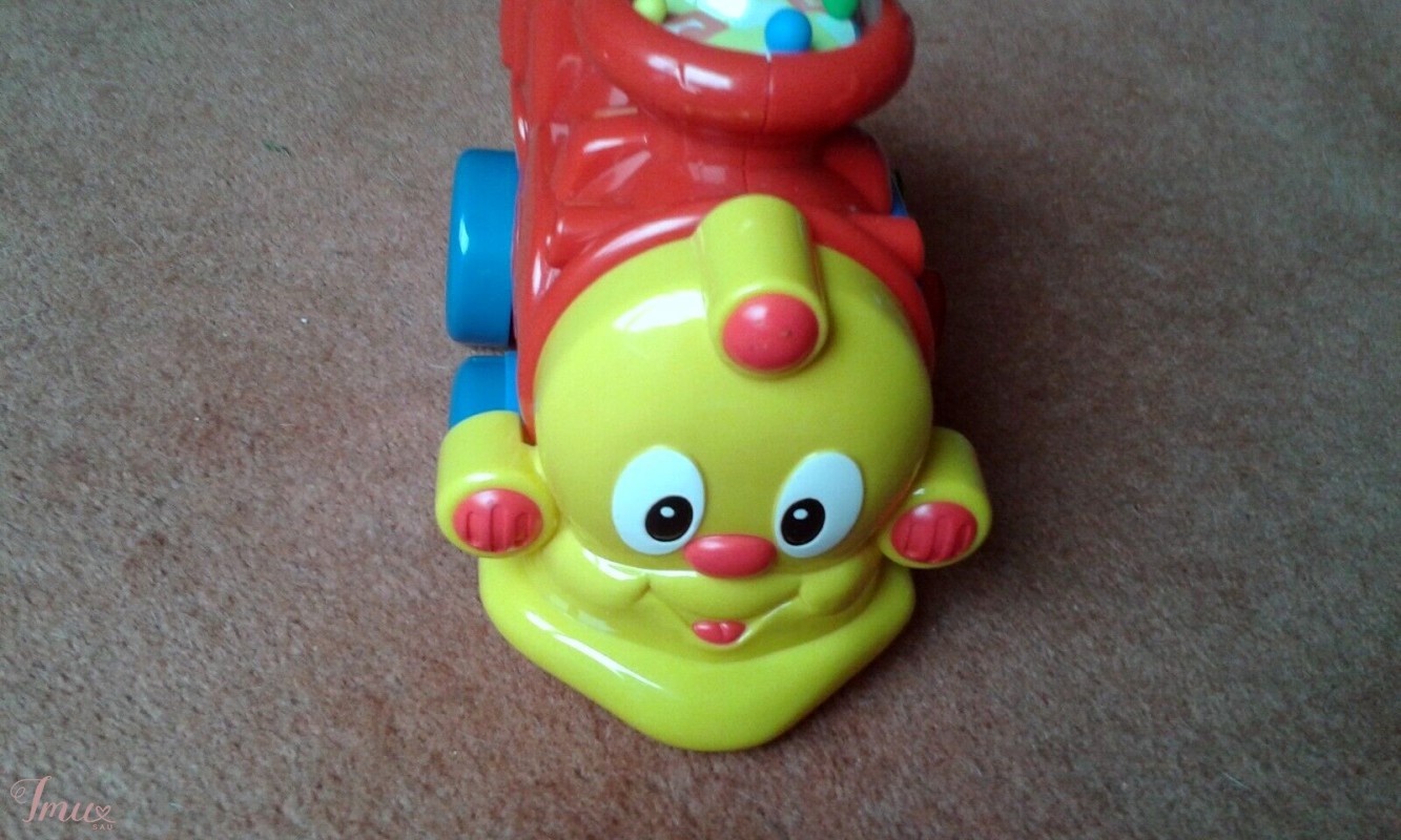 Tai gražus mažas traukinukas, jis dainuoja ir groja melodijas, taip pat sako frazes ,kai traukinukas stumiamas veidas juda o kamuoliukai piltuve iššoktų ir groja muziką. Lavina smulkiąją motoriką , garsais ir melodijomis .