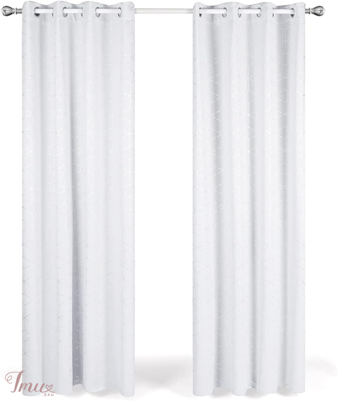 Naktinės užuolaidos. Pakuotėje 2 vienetai. Išmatavimai: 132 x 160. Spalva: pilka su sidabrinėm linijom (rombais).