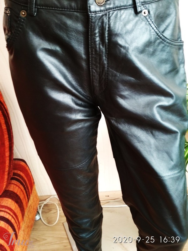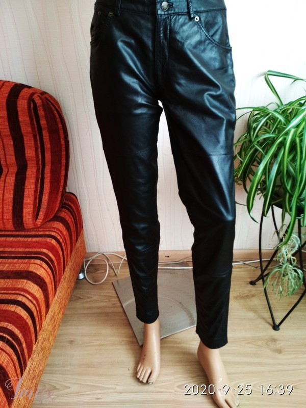 Juodos, naturalios odos , Vila firmos,puikios būklės .siauros kelnės Kaina su siuntimu ......siauros, nat.odos, be defektų ,puikios būklės , patogios , užsegimas saga ir užtrauktuku. Su kišenėmis . su pamušaliuku už kelių. Per klešnes po dvi siūles .Dydis -L. Išmatavimai : ilgis -99 cm, nuo klyniuko -77 cm. , juosmuo -41-42x2 cm, per klubus -49-50 cmx2 , per klyniuką -56-57x2 cm, apačia -14 cm.