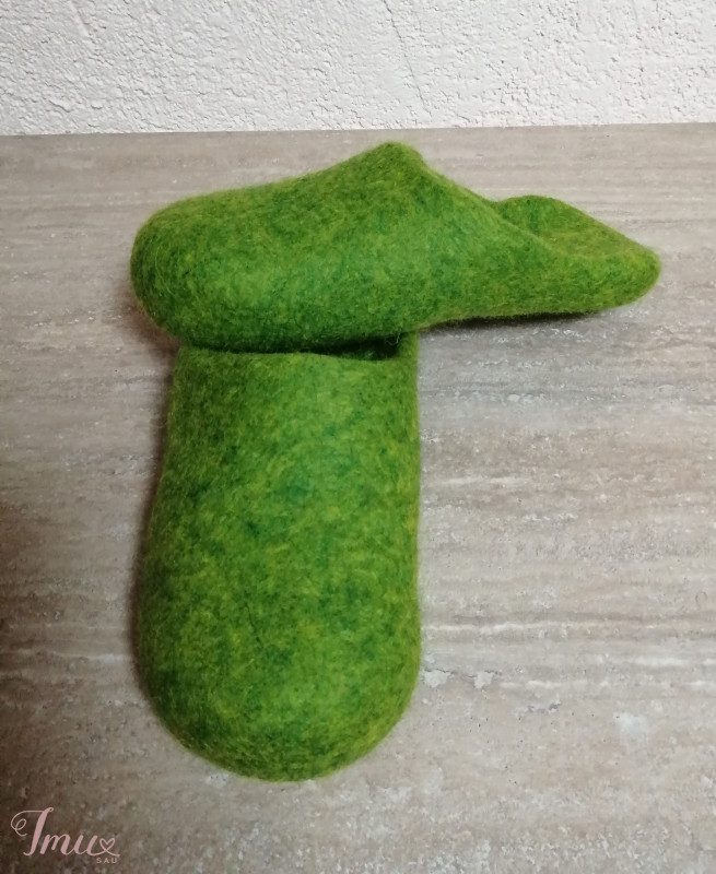 Naujos, natūralios vilnos, rankų darbo šlepetės. Padas išteptas lateksu, todėl neslysta ir puikiai nešiojasi. Labai šiltos ir mielos. Tinkamai prižiūrimas šlepetes galima dėvėti keletą metų. Puikiai tinka dovanai.