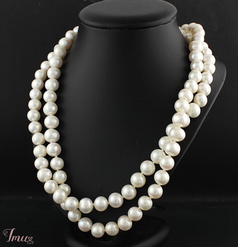 Natūralių upinių perlų vėrinys. Pasidabruota sąsaga. Perlo skersmuo: 9-10mm ilgis 45 cm. Taip pat kuriame papuošalus su perlais pagal Jūsų individualius užsakymus. Prekė supakuota į baltos spalvos, gražią, puošnią dėžutę. Prekes išsiunčiame per 2 d.d. nuo apmokėjimo. Brendas Noorkuu boutique https://lt.noorkuuboutique.eu/