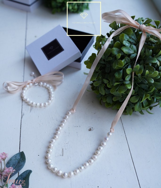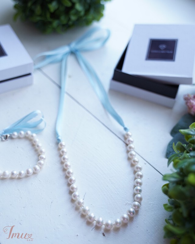 Natūralių perlų vėrinys su juostele