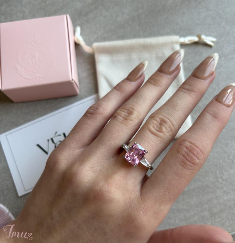 Naujas Veia.line sidabrinis žiedas su rožiniu cirkonio akmeniu