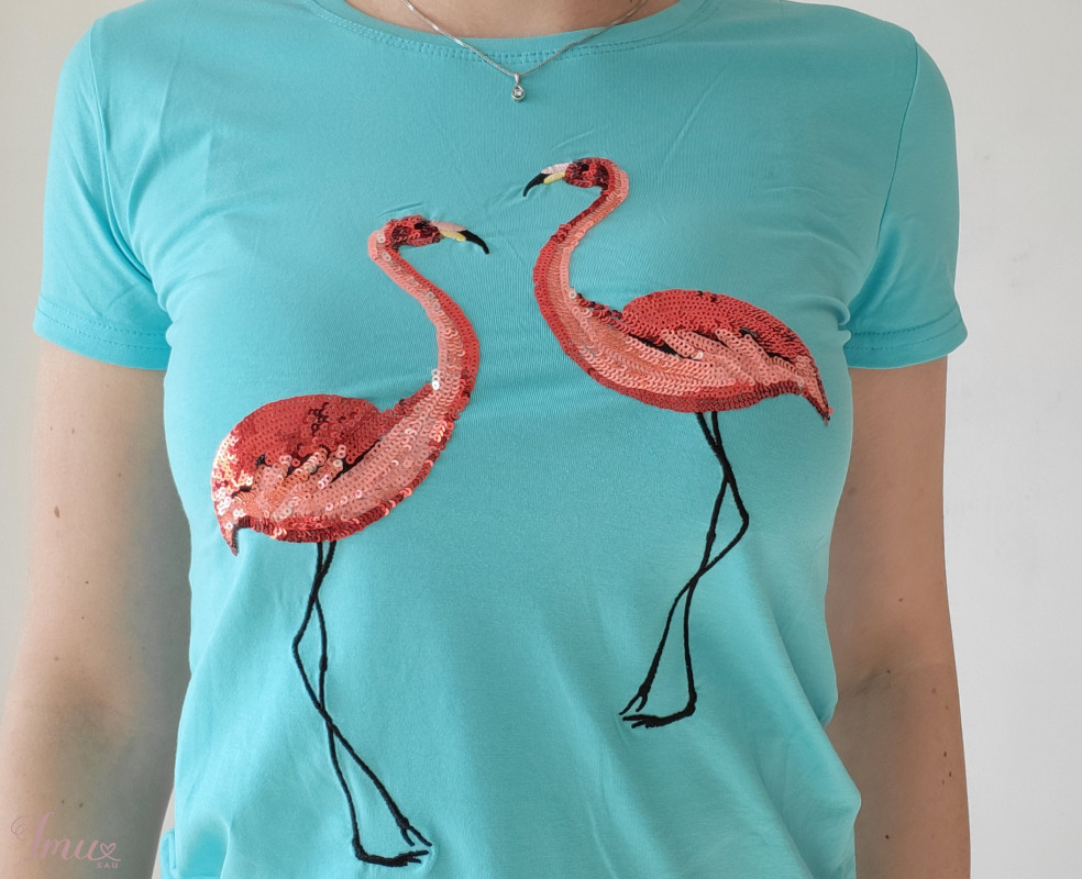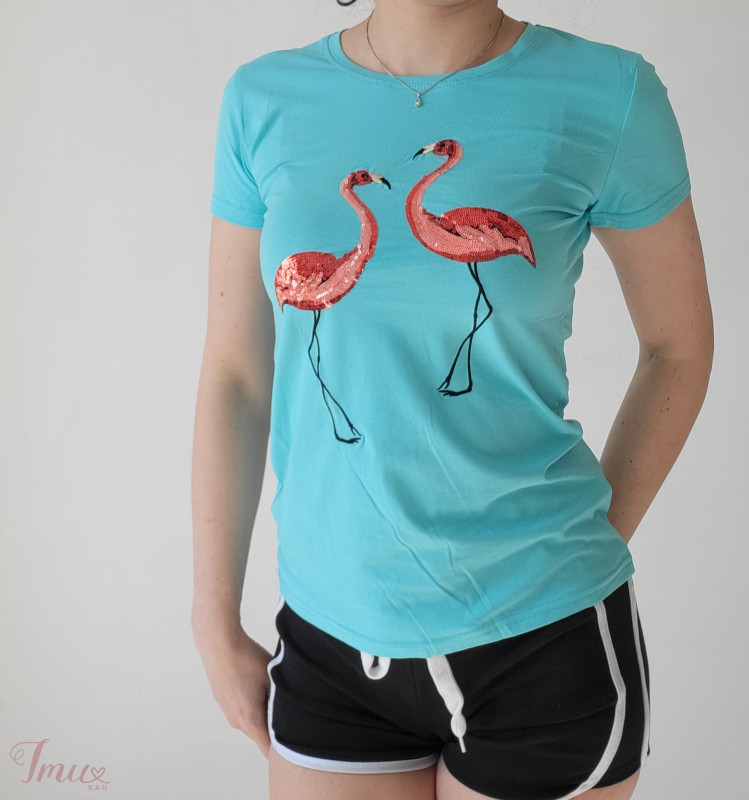 Nauji ryškūs marškinėliai su flamingu