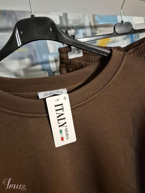 Nerealus stilingas laisvalaikio kostiumėlis. Kelnių ilgis 103 cm Plotis per klubus 58 cm (tempiasi) Liemuo 37 cm (tempiasi) Megztinukas tarp pažastų 61 cm
