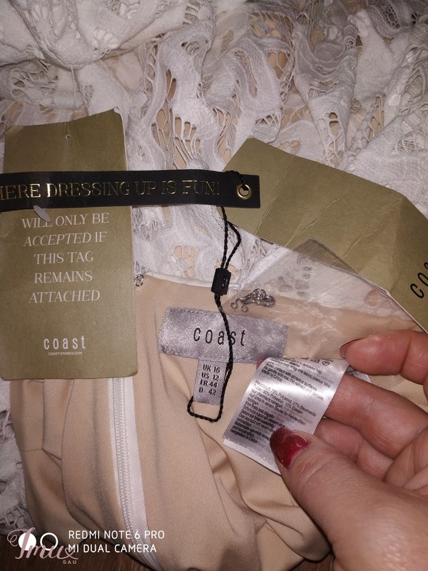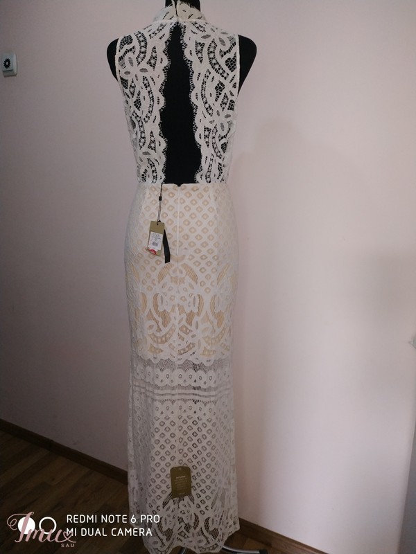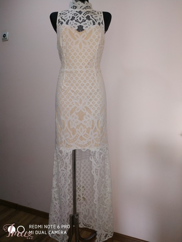 Nauja, puikiai tinkanti nuotakai arba krikštynoms suknelė. Krūtinė 110 cm., liemuo 90-93 cm., klubai 112 cm., visas ilgis 94-158 cm.