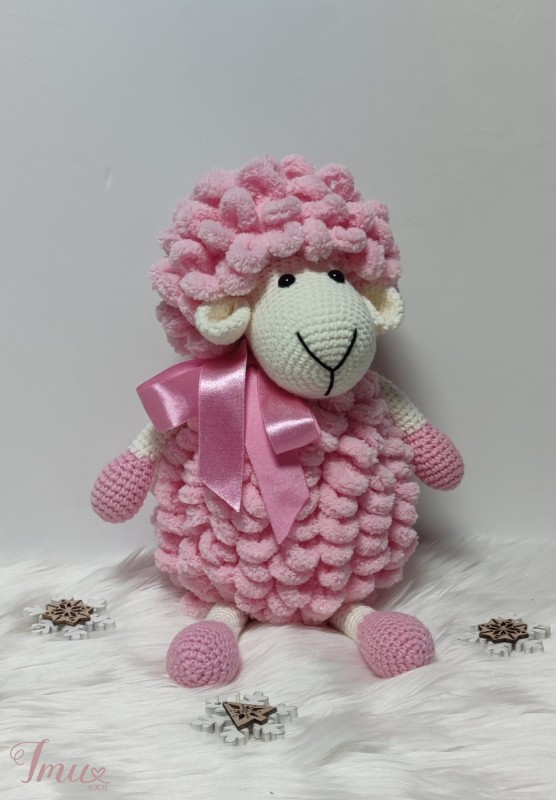 Nerta avelė Garbanele. 35cm dydžio. Snukutis, kojytės nertos iš medvilninių siūlų, garbaneles-poliesterio siūlai. Akytes saugios, tvirtinasi iš vidaus.
