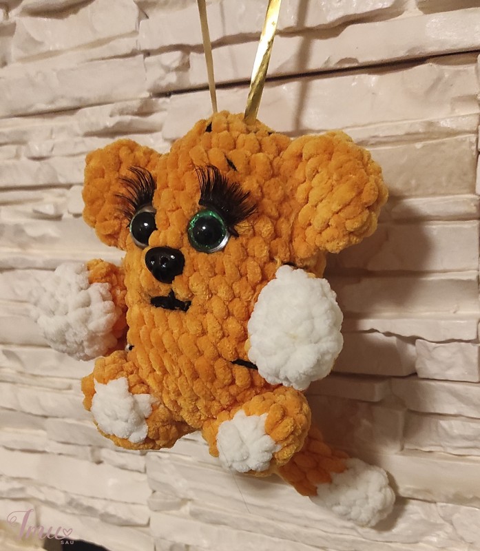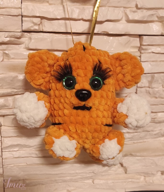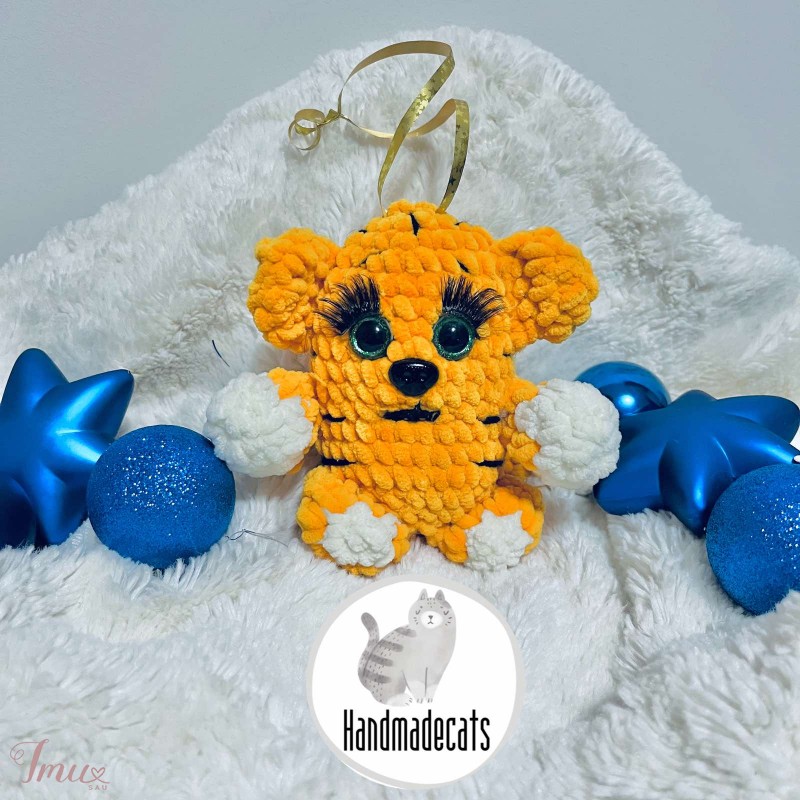 Pliušinis nertas rankų darbo Tigriukas. 15x15 cm