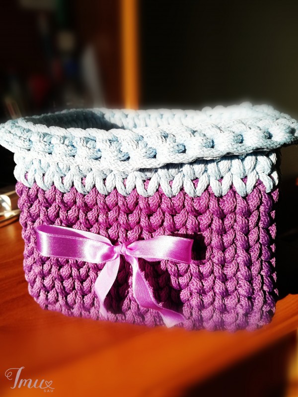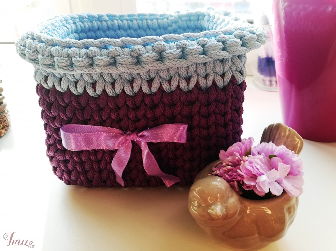 Naujas krepšelis, puiki stalo dekoracija ar įvairiems daiktams suaidėti. Tvirtas ir švelnių spalvų. Tiks bet kokiam interjerui. Su atlasiniu kaspinėliu.