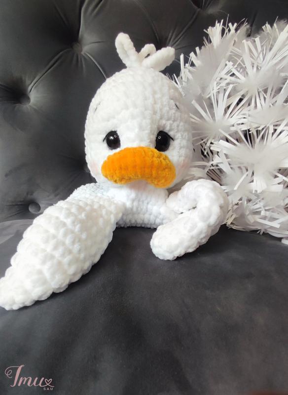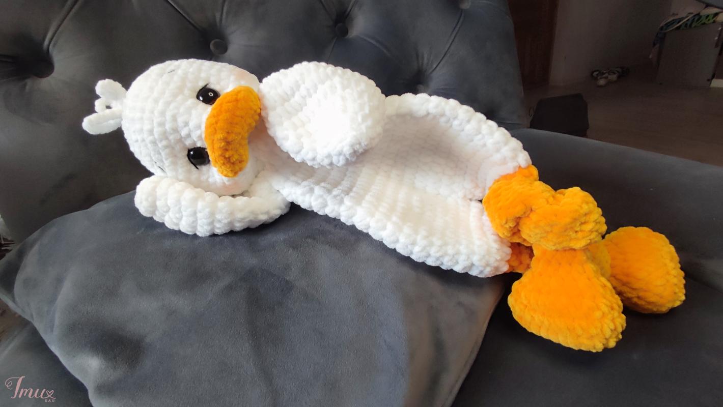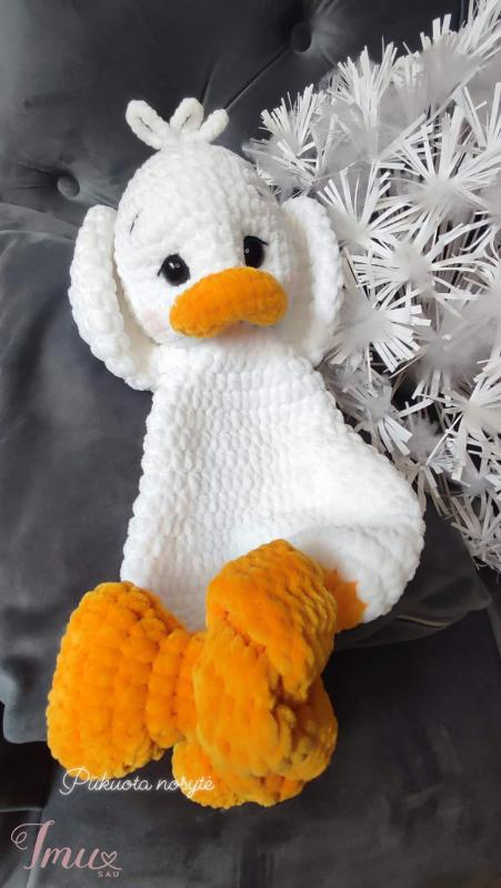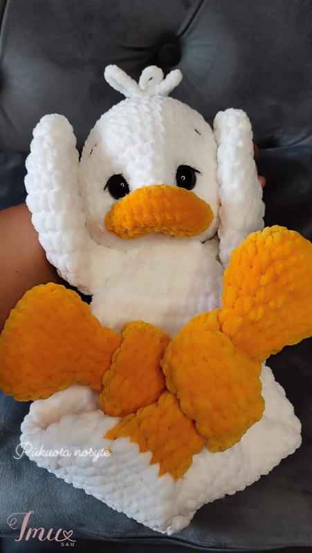 Nertas ančiukas saugiomis akytėmis ieško draugo(draugės) ramiam,saldžiam miegeliui. 48 cm. dydžio,minkštas,švelnus vaiko rankytėms