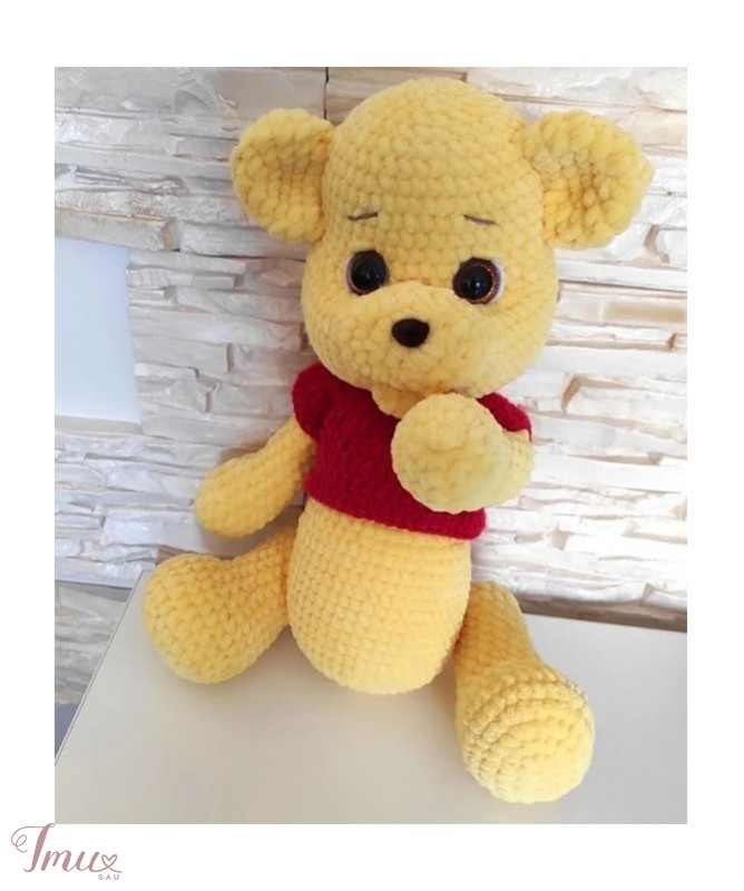 Šis mielas žaislas pagamintas rankomis, su didele meile ir kruopštumu. Naudojami siūlai yra visiškai saugūs. Unikalus - antro tokio nerasite.Sudėtis: Himalaya Dolphin Baby - 100% mikro-poliesteris, YatnArtJeans: medvilnė - 55%, akrilanas - 45%. Užpildas: 100 proc. PES pluošto kamuoliukai. Dydis: 33 cm. Tinka vaikams nuo 3 metų, mažesnių vaikučių nepalikite žaisti be priežiūros dėl esamų smulkių detalių. Turi saugias akytes, nosytė - plastikas. Galima skalbti 40 laipsnių temperatūroje. Rankų darbas.