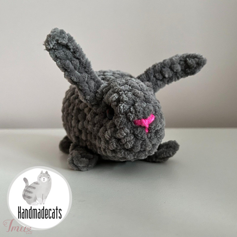Rankų darbo nertas pliušinis žaislas vaikams pilkos spalvos triušiukas. Žaisliuko minkštas kūnelis leidžia vaikams prisiglausti prie jo, kad jaustūsi patogiai, arba pasiimti jį su savimi į kelionę, kad bet kur galėtų palaikyti kompaniją. Tai bus puiki dovana.Sudėtis: 100 proc. PES. Užpildas: 100 proc. PES pluošto kamuoliukai. Dydis: 14 cm. Tinka vaikams nuo 3 metų. Turi saugias akytes. Galima skalbti 30 laipsnių temperatūroje. Rankų darbas.