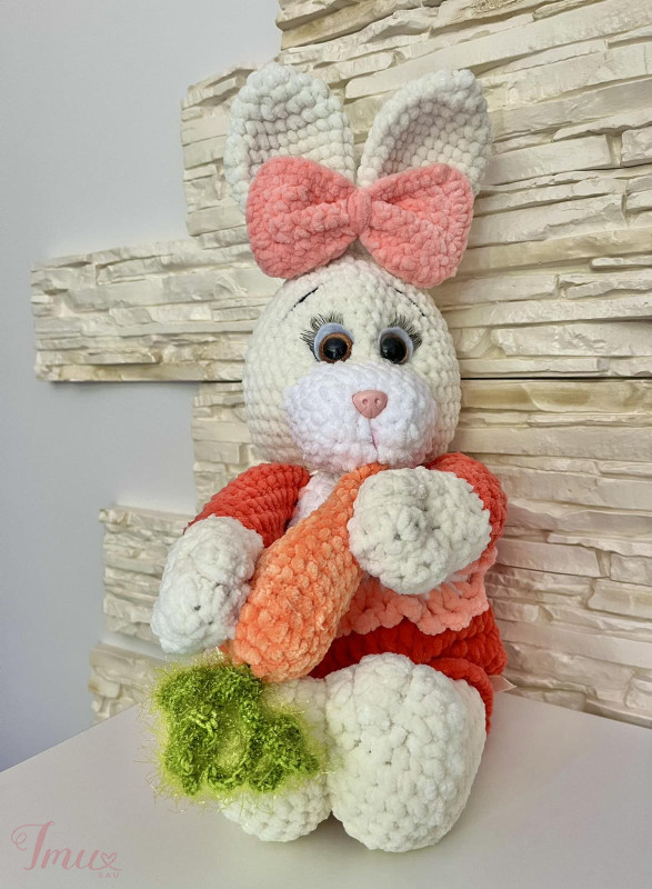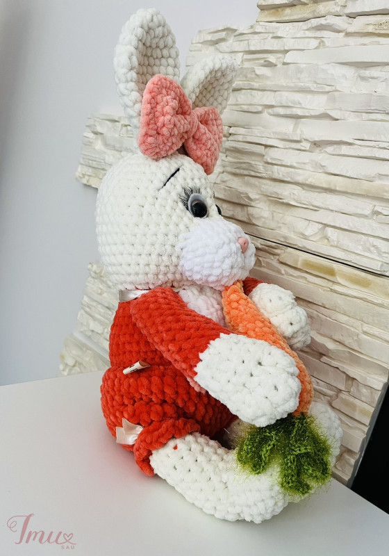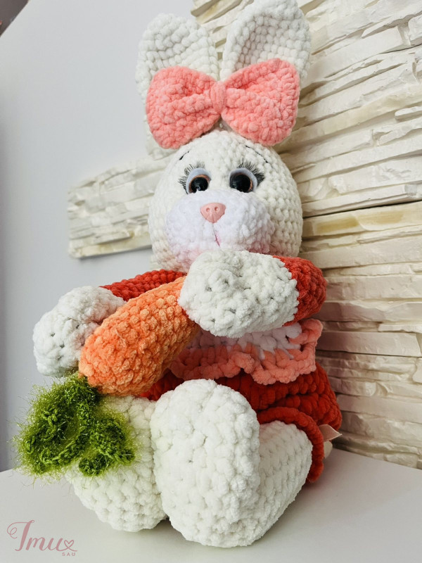 Nertas, ranku darbo pliušinis zuikis. Dydis: 37X27 cm. Siulai: HIMALAYA DOLPHIN BABY.