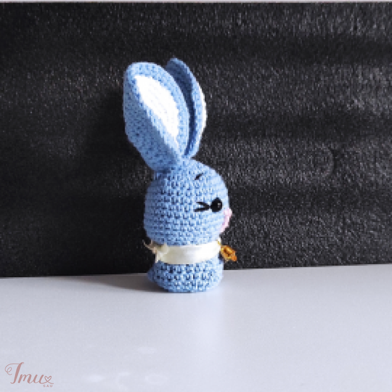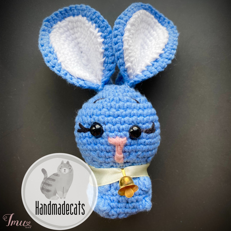 Nertas zuikiukas. Dydis: 13X8 cm Siulų sudėtis: medvilnė - 55%, poliakrilas - 45%