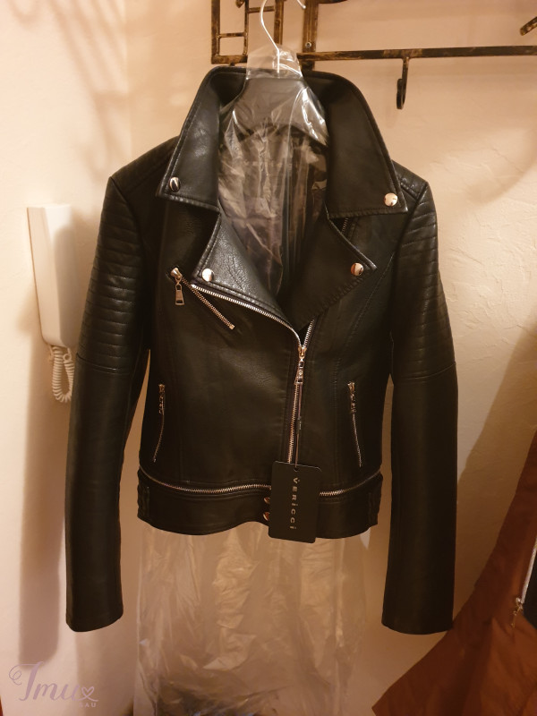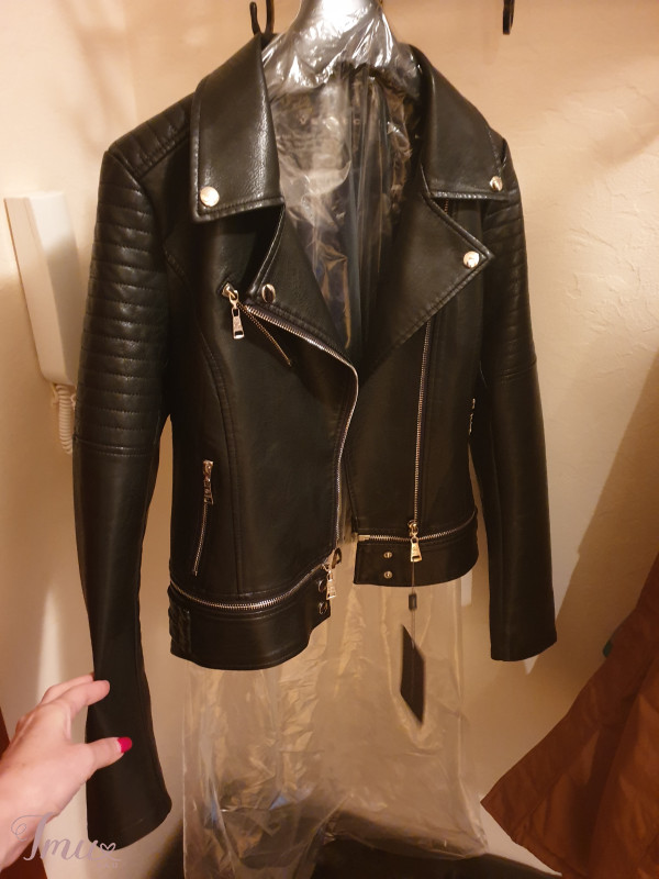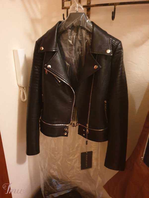 Nauja odine striukyte, labai graziai atrodo realybeje, aukstos kokybes, galima patrumpinti atsegus apacioje. Vizualiai lieknina liemeni, labai patogi. Bendras ilgis apie 52 cm, rankoves nuo peties 62 cm, tarp pazastu 43 cm.