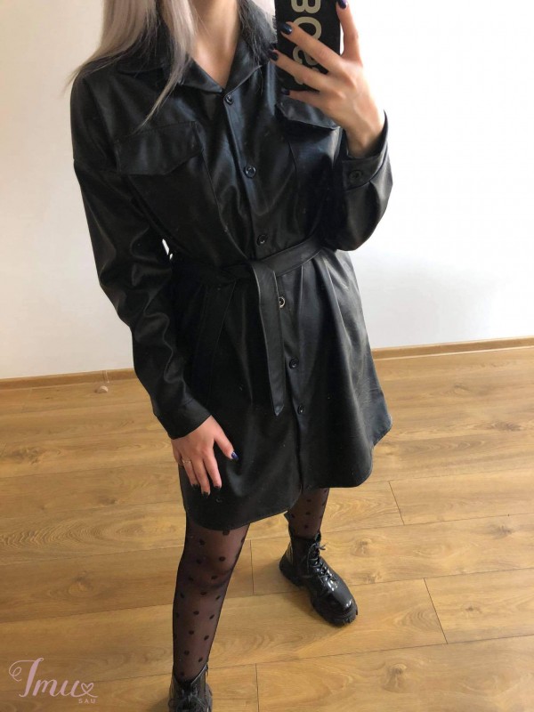 Labai graži odinė suknelė, su dirželiu. Dydis universalus, labiausiai tiktű S-M dydžiui.
