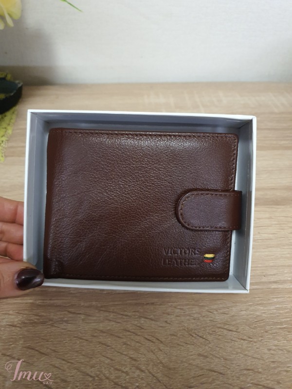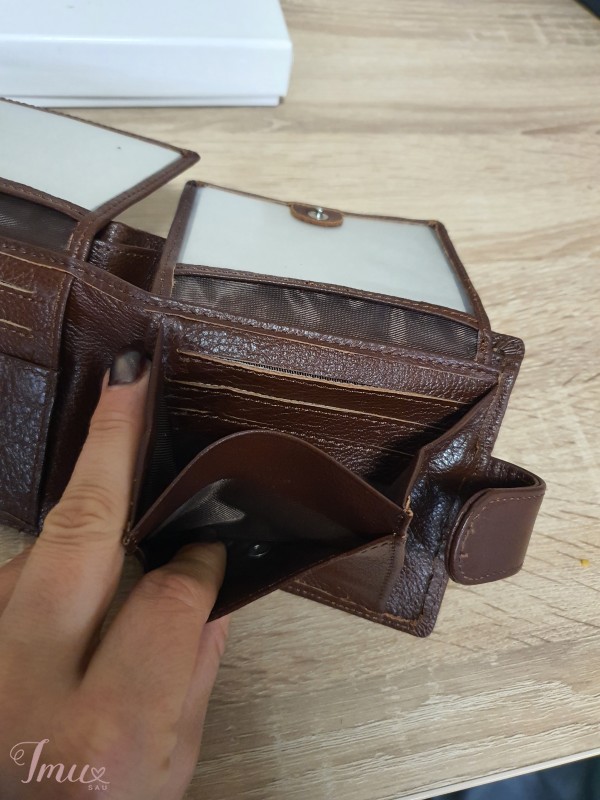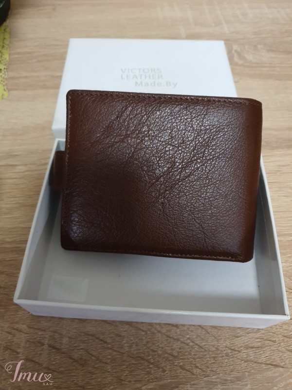 Parduodu rudos spalvos vyrišką, odinę piniginę. Visiškai nauja. Išmatavimai: aukštis 10cm, plotis 13cm. Yra dėžutė.