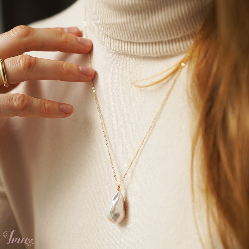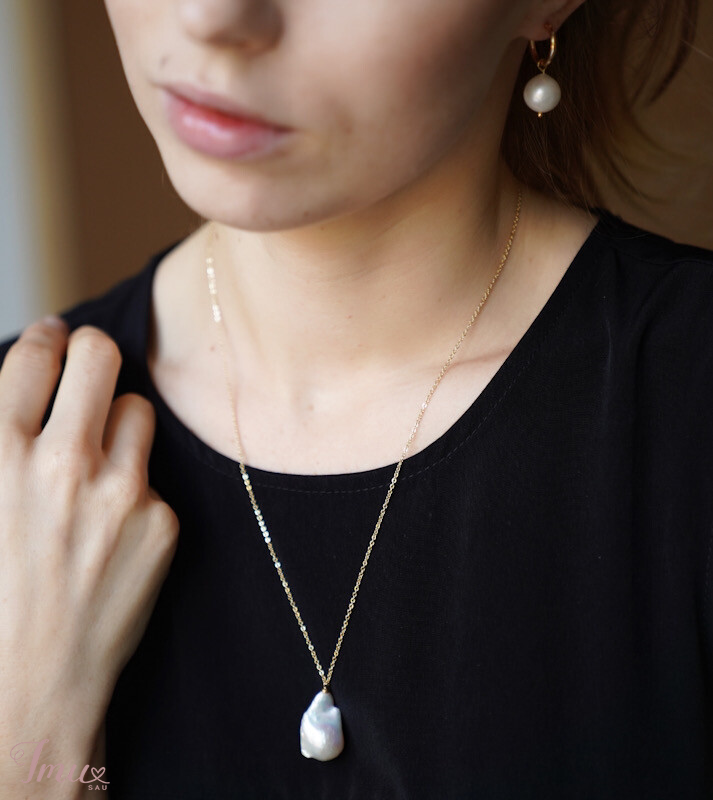 Paauksuota grandinėlė su natūraliu Baroque perlu, 2-3cm
