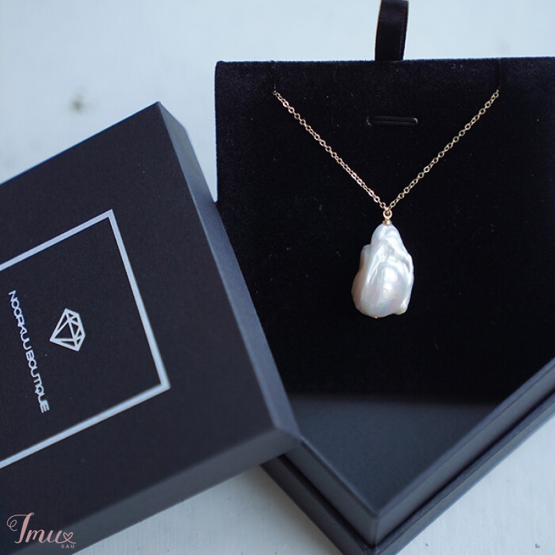 Paauksuota grandinėlė su Baroque perlu, 2-3cm. Paauksuotas 585 prabos geltono aukso. Ilgis 46-51cm. Prekė supakuota į baltos spalvos, gražią, puošnią dėžutę. Prekes išsiunčiame per 1 d.d. nuo apmokėjimo.
