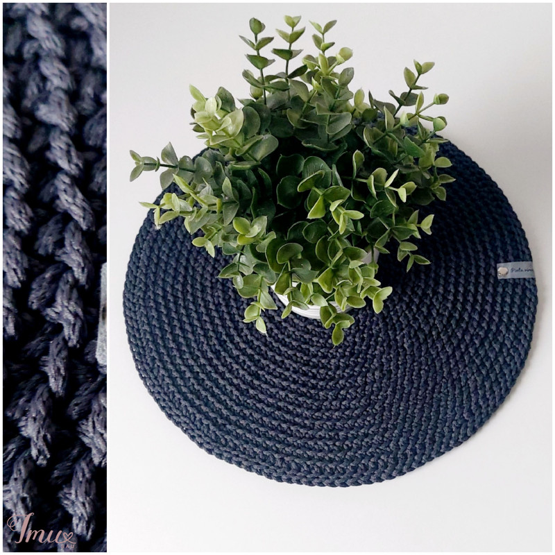 Rakų darbo 37 cm padėkliukas, skirtas stalui ar interjerui iš poliesterinės virvelės. Nebijo karščio. Galima skalbti skalbyklėje.