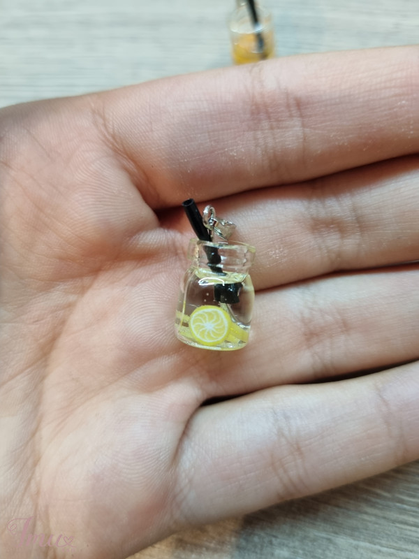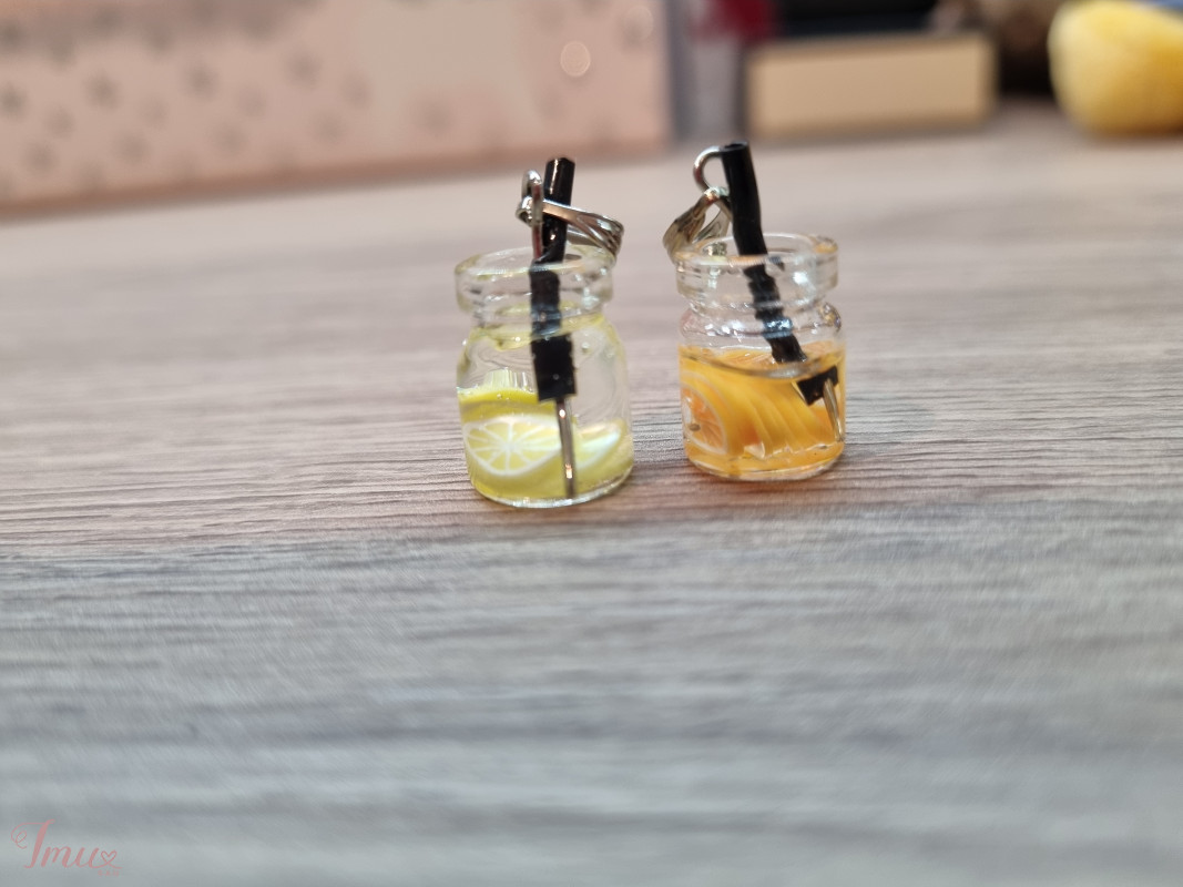 Nauji, geros būklės, galima užverti ant norimos grandinėlės :). Kaina parašyta už abu tačiau galima pirkti ir po vieną, kuris labiau traukia akį :). Vienas limonadas su citrinomis, kitas su apelsinais, abu turi po juodos spalvos šiaudelį :).
