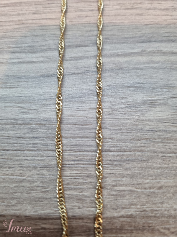 Grandinėlės tipo pakabukas. Aukso spalvos, pintas.