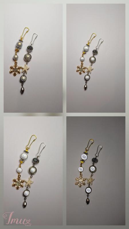 Ranku darbo. Kaina vieno.Atšvaitiniai karoliukai 10.8mm. Detales metalas,snaige su akutemis. Stiklo kristaliukai. Ilgojo pakabuko ilgis 9cm.,kito apie 8cm.