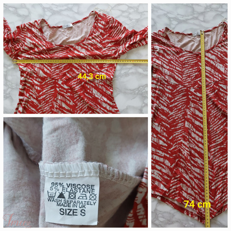 Patogi palaidinė puikiai tinkanti tiek prie kelnių, tiek sijonų. Dydis etiketėje nurodytas S, bet būtų laisvai krentanti, todėl priklausomai nuo norimo laisvumo manau tiktų iki L. Reikėtų vadovautis išmatavimais pateiktais nuotraukose.