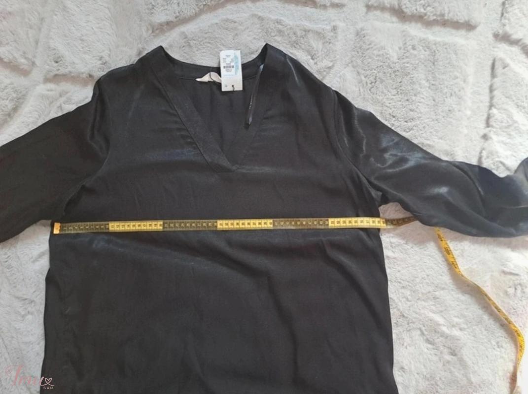 Plona plati laisvai krentanti palaidine V formos kaklo iskirpte. Ūgį raso M bet tiktu ir L. Ilgis 79cm. Rankoves nuo petuku 61cm. Plotis 57×2cm. Siunciu.