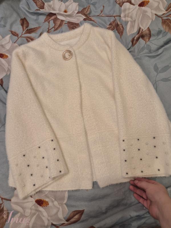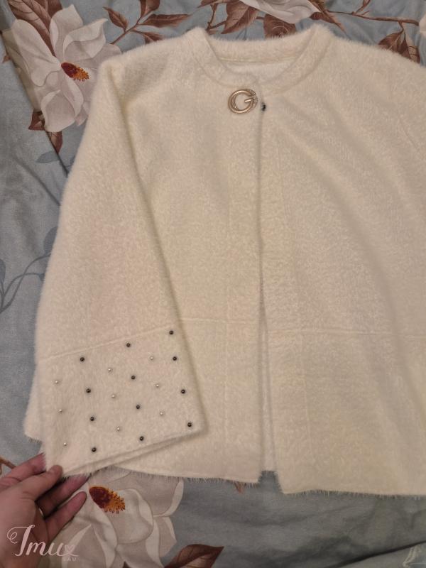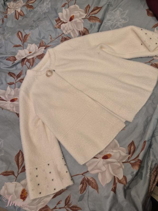 Dėvėtas pora valandų, pirktas vestuvėms. Dydis tiktų L-2xl Baltos spalvos, galima palikti tik viena sagute bet yra ir per visa ilgį reikėtų tik įsisiuti sagutės yra. Šiltas, vestuvės vyko Kovo mėn. Mokėta buvo 60€ Marijampolė-Kalvarija galimas siuntimas