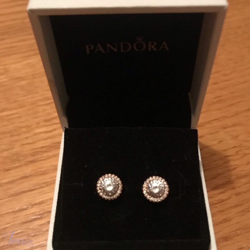 Susikurk vintažinį stilių su šiais rankų darbo auskarais-kaišteliais iš rausvo PANDORA Rose metalų lydinio, dekoruotais šalto tono skaidriais briaunuotais akmenimis.