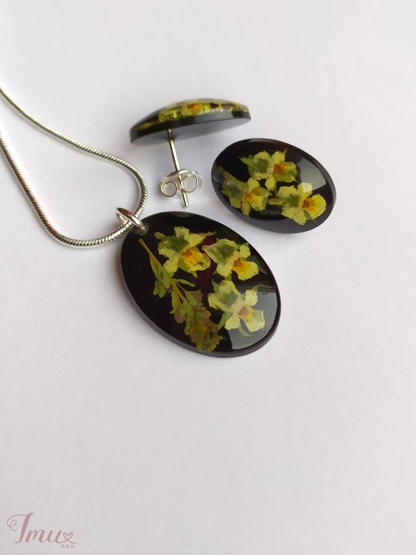 Rankų darbo auskarai ir pakabukas su tikromis mini našlaitėmis ☺️ Dalys sidabrinės, grandinėlė pasidabruota. 📨 Siunčiu. 🖊 Jei domina - parašykite 😉 Rinkinuko kaina 32eu