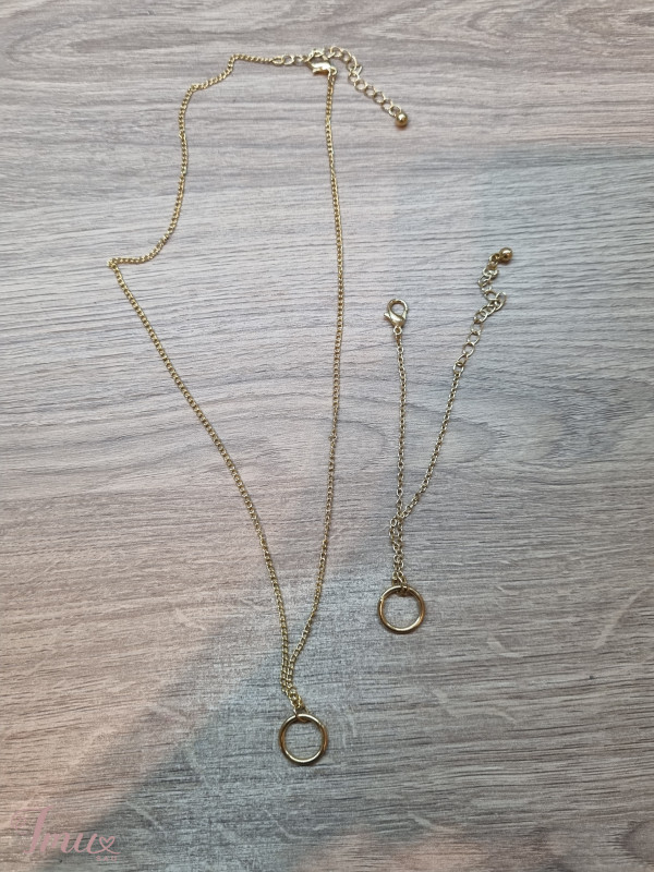 Puikios būklės, komplektas. Komplektą sudaro apyrankė ir pakabukas. Kaina parašyta už abu, tačiau galima pirkti ir po vieną :). Abu papuošalai yra su aukso spalvos grandinėlėmis ir ratukais :).