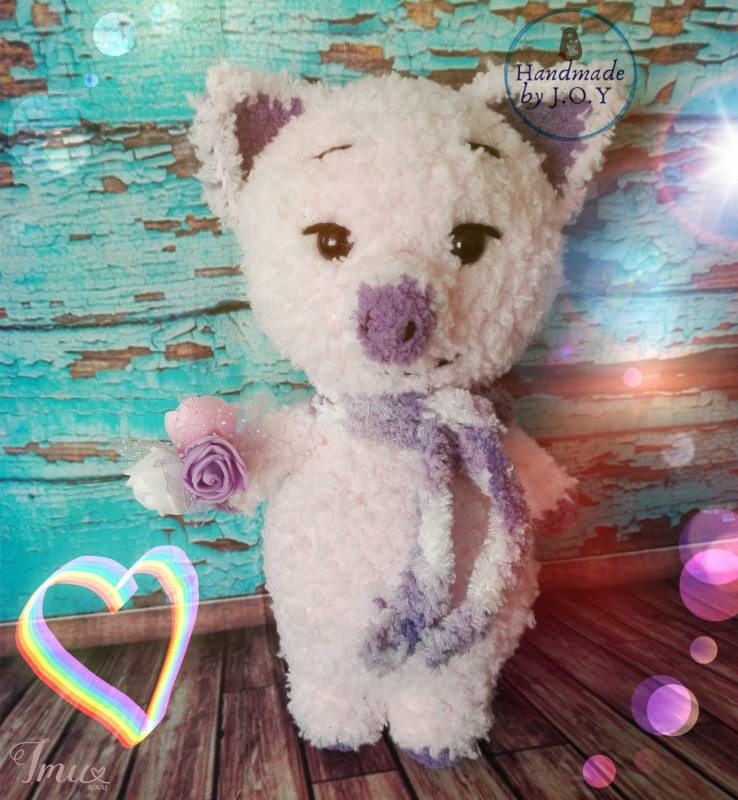 Super minkšta ir švelni. Šalikas nusiima, puokštė išsiima. Rankytės juda. Aukštis 21cm. Verpalai: minkšti vaikiški. Užpildas: poliesteris.