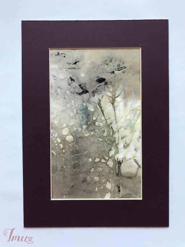 Paveiksliukas, sukurtas naudojant augalinės spauos techniką. Dydis su porėmiu 21 x 30 cm. Porėmis tamsiai violetinis. Augalinė spauda - tai aplinkai draugiška technika. Piešinys kuriamas nenaudojant jokių cheminių medžiagų ar sintetinių dažų. Spalvas ir piešinį kuria gamta. Daugiau mano darbų: https://www.facebook.com/Magicfeltdesigns/