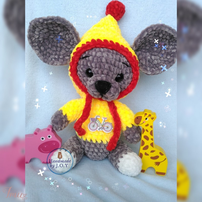 Visas letenėles galima pajudinti, sėdi, stovi. Kapišonas nusiima, užsiriša. Aukštis 23cm. Verpalai: pliušinis velvetas. Užpildas: poliesteris.
