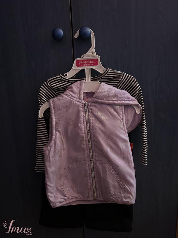 visiškai naujas su etiketemis, mergaitei kompelektukas, kelnytes, maikute, liemene (pašiltinta) 18mėn