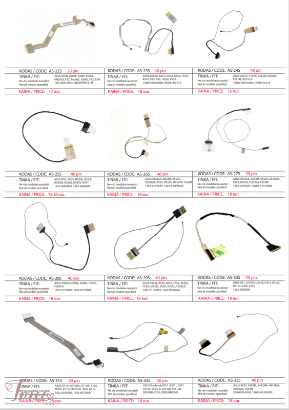 PIGIAUSIAI. ASUS nešiojamų kompiuterių ekranų šleifai, ŠIAULIAI