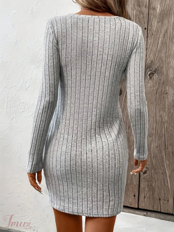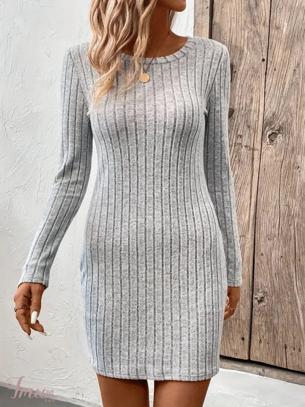 Pilka elegantiška suknelė ilgomis rankovėmis 96599