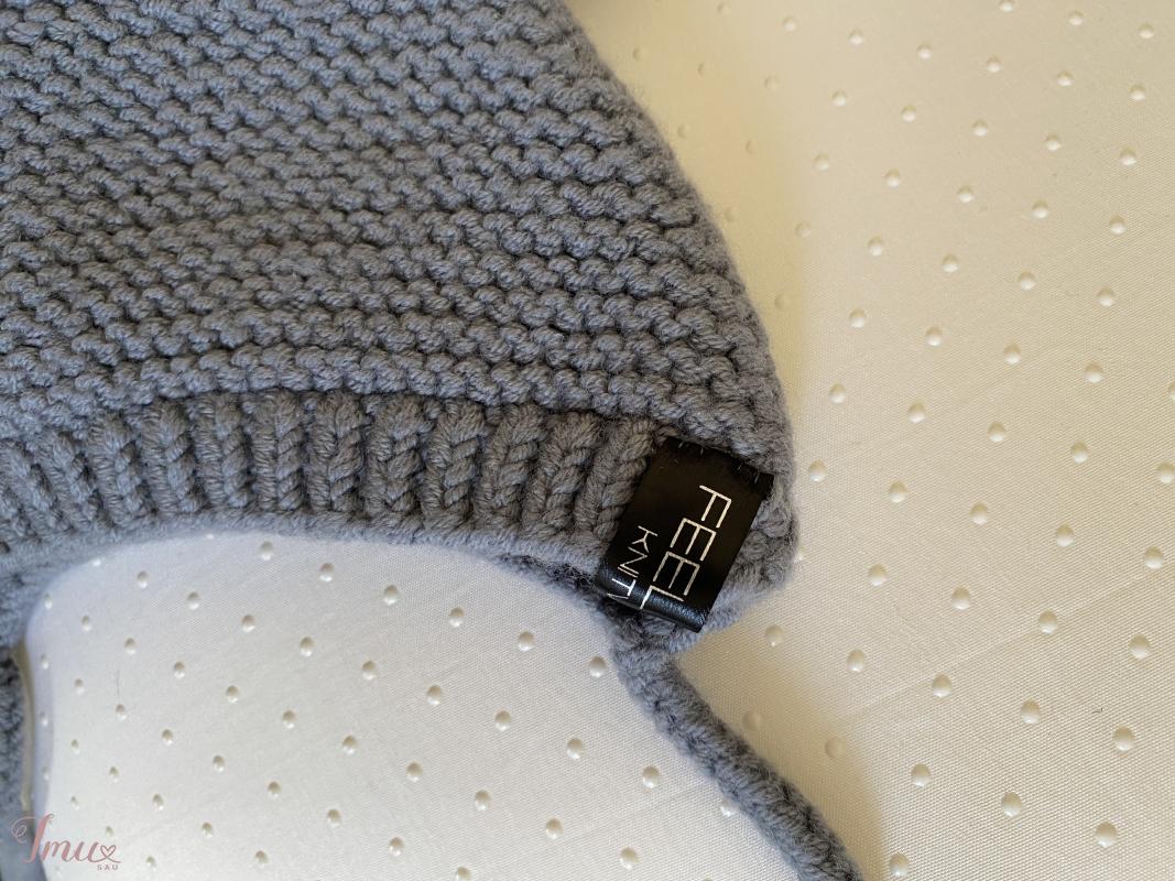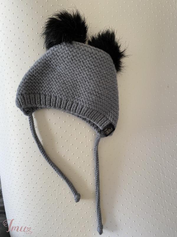 Pilka merino vilnos (100%) kepurė kūdikiui. Mažai dėvėta, greit išaugom. Pirkta iš Feel soft Knitwear. Tinka ir mergaitei, ir berniukui. Tiks maždaug iki 3 mėn.