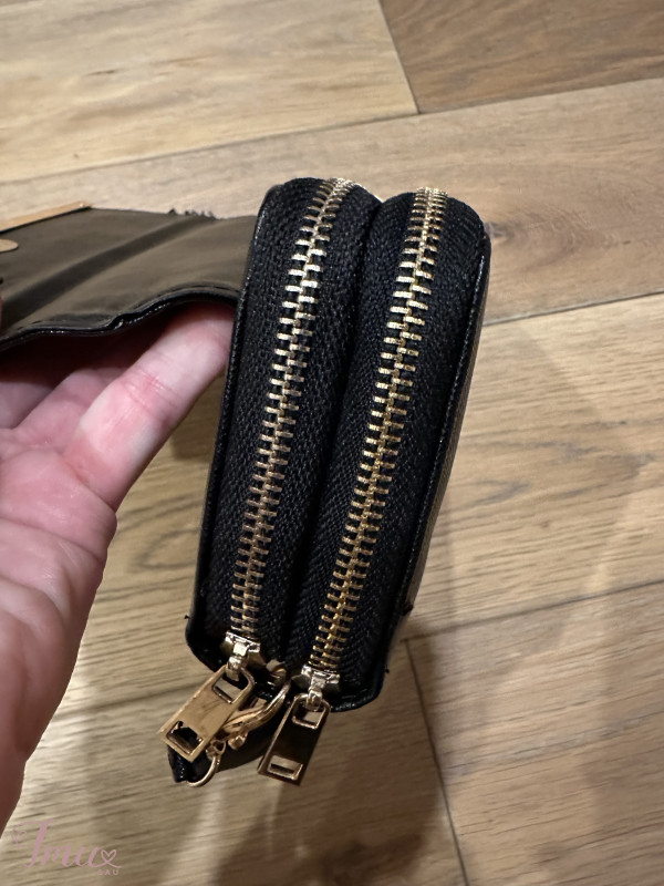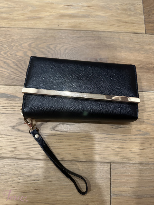 Labai geros būklės piniginė, yra rankenele galima kaip delninę pasidaryt, 19x11x5 #pinigine #juodapinigine #suauksodetalemis