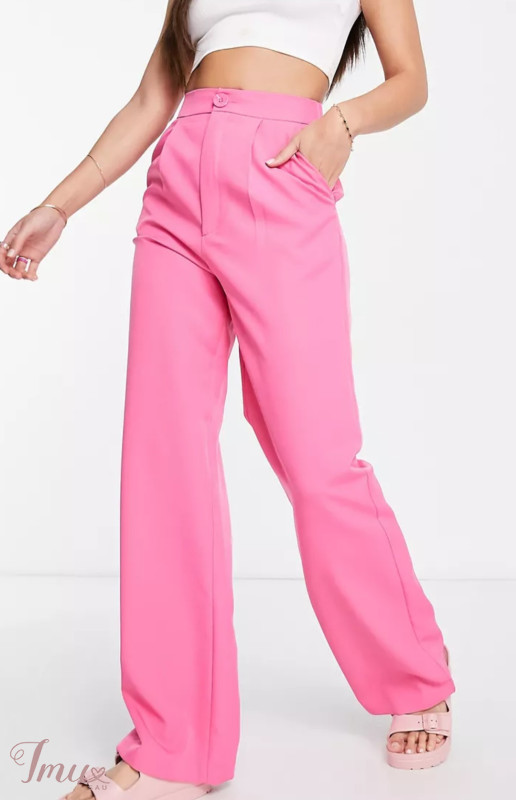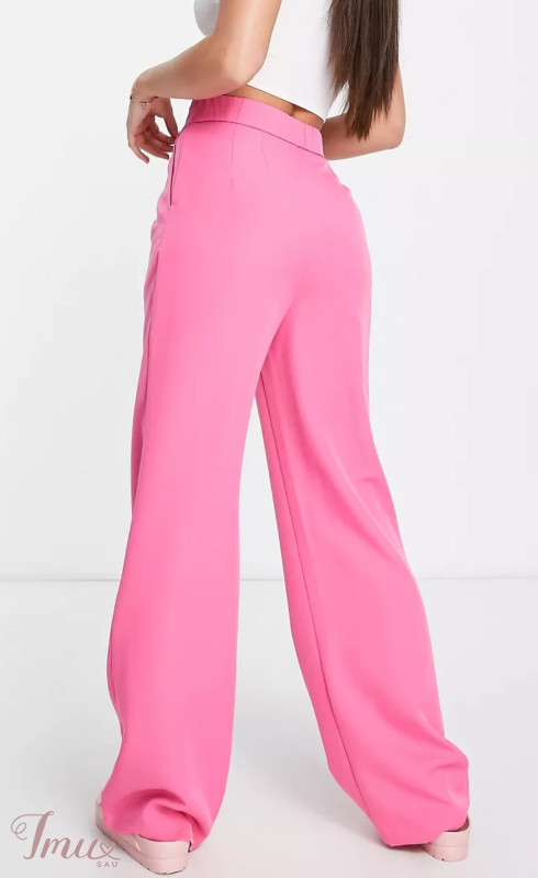 Rožinės plačios kelnės, aukštaūgėms. Iš nugaros guma. stradivarius
