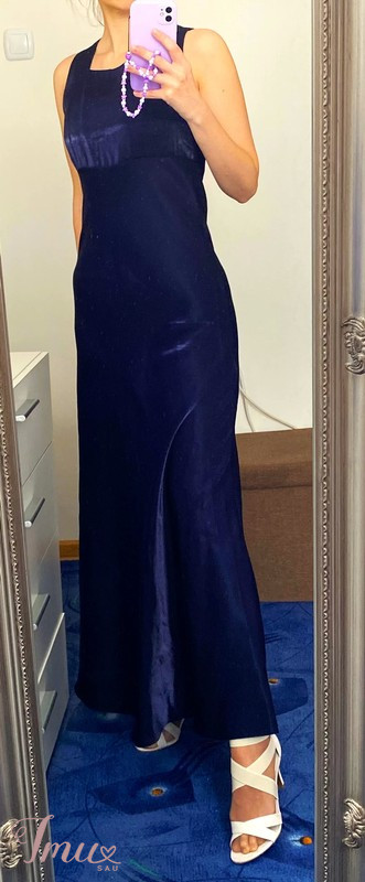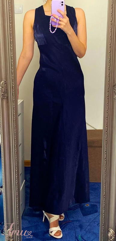 LP express, Omniva +3 €. Spalva - nuo juodos - per tamsiai mėlyną - iki violetinės, priklauso nuo apšvietimo. Krūtine - 80-85 cm, liemuo - 75-85 cm, klubai - 100-110, ilgis - 143 cm.