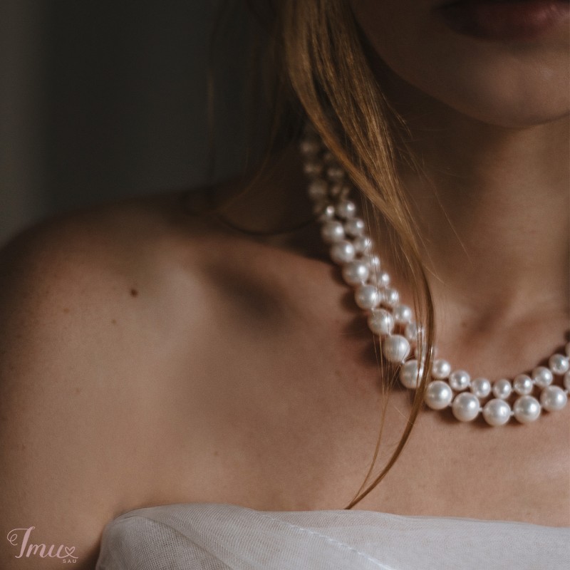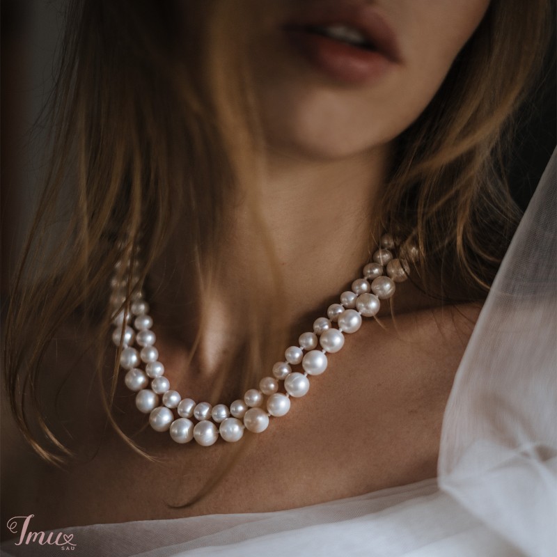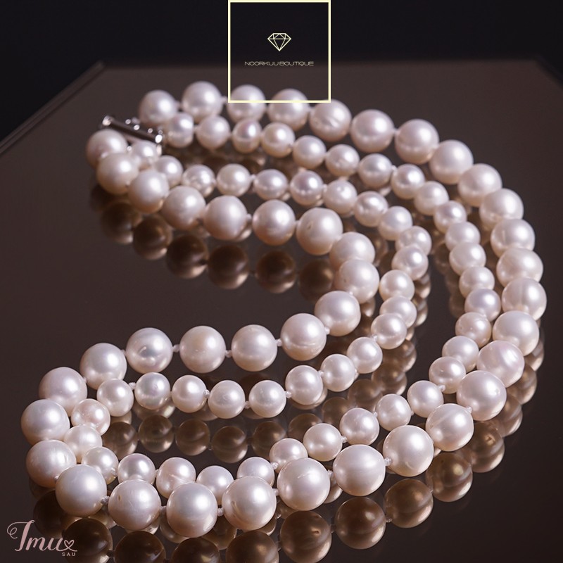 Prabangus dvigubas natūralių perlų vėrinys, 7 ir 9mm