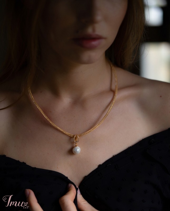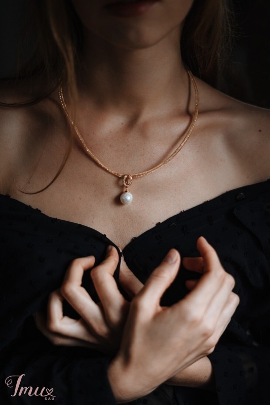 Prabangus pakabukas su natūraliu perlu. Perlo skersmuo 10mm. Pakabukas iš paauksuoto nerūdijančio plieno. Ilgis reguliuojamas nuo 45 iki 50 cm. Prekė supakuota į baltos spalvos, gražią, puošnią dėžutę. Prekes išsiunčiame per 1 d.d. nuo apmokėjimo. Brendas Noorkuu boutique https://lt.noorkuuboutique.eu/
